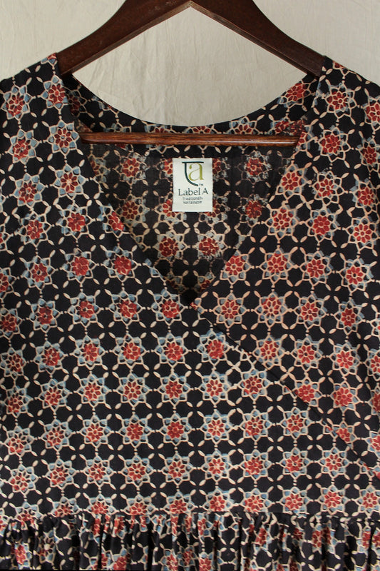 Amrita — Black Cotton Ajrakh Dress