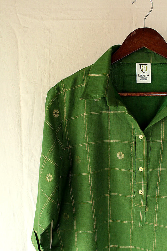 Amreen — Green Cotton Jamdani Dress