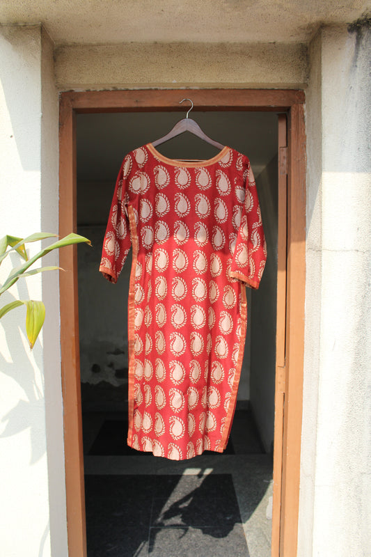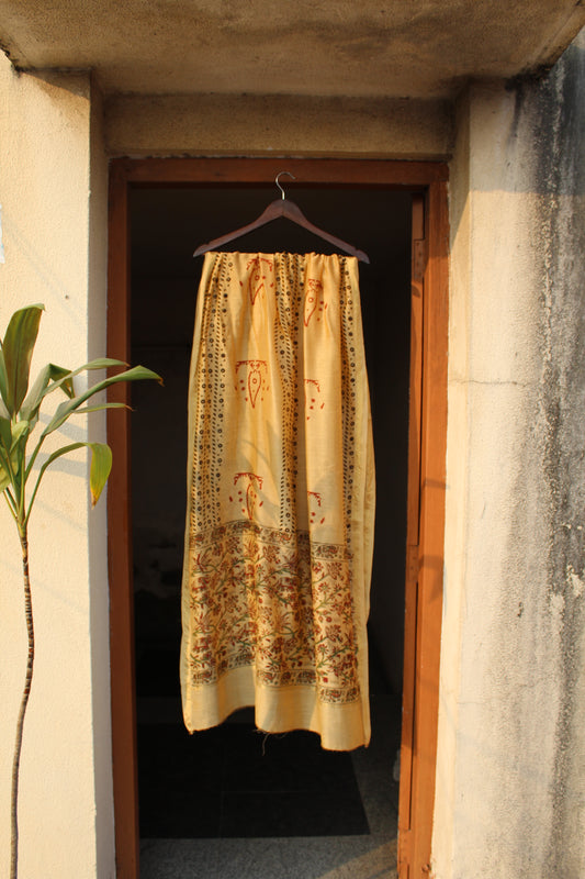 Myra Mustard Bagru Kalamkari Chanderi Silk Suit Set with Bottom & Dupatta | Hand Block Print |