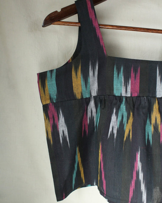 Aaravya - Black Multicolor Ikat Top